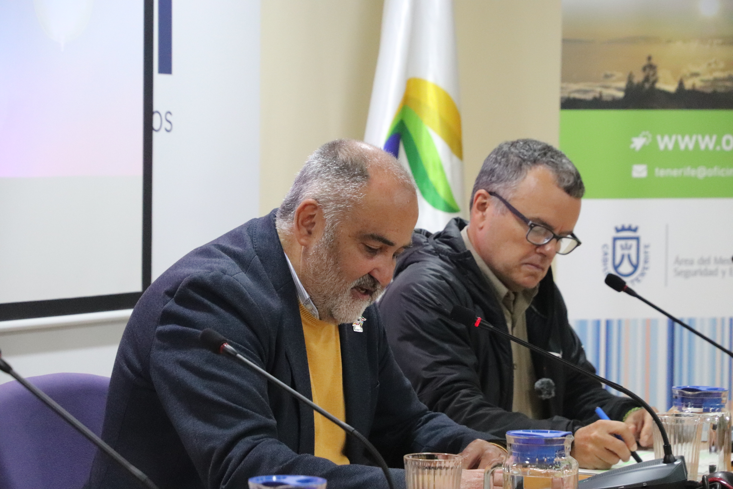 La presentación institucional corrió a cargo de Escolástico Gil Hernández, alcalde de El Rosario y miembro del comité ejecutivo de la FECAM, y de Pedro Millán del Rosario, director insular de Medio Natural del Cabildo de Tenerife, quienes destacaron la importancia de la colaboración entre administraciones para avanzar en una transición energética que integre la dimensión social.