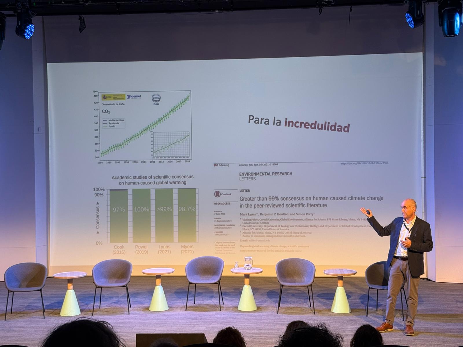 En el bloque energético, el investigador del CSIC Antonio Turiel planteó la necesidad de adoptar una visión holística que aborde no solo el cambio climático, sino el agotamiento de los recursos y los límites planetarios ya sobrepasados. Explicó que el modelo energético global se enfrenta a restricciones estructurales —como la caída en la producción de diésel o la dificultad de una electrificación completa— y defendió la urgencia de repensar los consumos y reducir la demanda para reforzar la resiliencia.